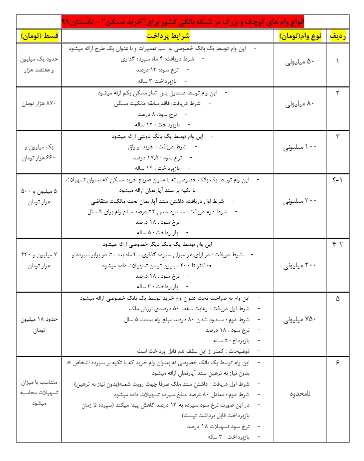 هرکدام از این تسهیلات به لحاظ چند مشخصه اصلی مربوط به ویژگیهای وام، شکل متفاوتی از کمکهزینه مسکن محسوب میشوند